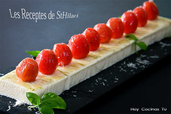 Este Mousse de queso parmesano con tomates cherry no sólo tiene una presentación elegante para vestir una mesa en un día festivo, por los ingredientes que contiene, el sabor debe ser una delicia, y por la forma de elaborarlo, ofrecerá una textura muy agradable al paladar. Todo son deducciones, pero lo tenemos fácil para corroborarlo gracias a que Alfons, autor del blog Les Receptes de St Hilari, comparte la receta en vuestra sección Hoy Cocinas Tú.