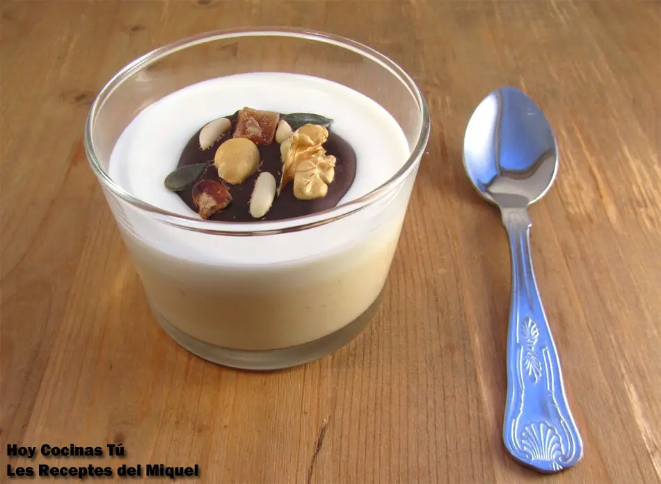 El autor del blog Les Receptes del Miquel comparte la receta de Mousse de turrón, yogur y bombón de músico en vuestra sección Hoy Cocinas Tú, un postre muy fácil de hacer y que es ideal para un día festivo. El ‘bombón músico’ es lo que otros conocemos como mendigo, o mendiant, un disco de chocolate con cuatro frutos secos, avellana, almendra, uva e higo seco, aunque hay muchas variantes que incluyen nueces, piñones, pistachos, piel de naranja confitada… Esta ‘golosina’ está rica con la mousse, con el café y sola, así que tomad nota también de su sencilla elaboración.