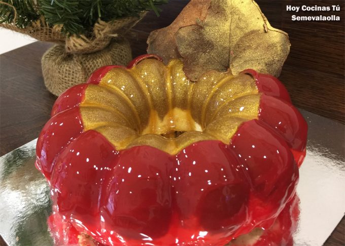 El molde con el que está hecho este Pastel de Navidad se llama Kit Magia del Tiempo, y es de la firma Silikomart, podréis encontrarlo en las tiendas que conozcáis que trabajan con esta marca, o podéis buscar en Google por el nombre, os saldrán varias tiendas online que lo tienen por un precio que ronda los 28-30 euros. Disponiendo del molde, sólo quedará seguir la receta de Elisa paso a paso, el pastel se compone de un bizcocho genovés de chocolate, un cremoso de chocolate, una mousse de vainilla, una gelatina frutos rojos y un glaseado de fresa. ¿Qué os parece este pastel para servir como postre en Navidad?,¿os animáis a hacerlo o preferís la tradición y el tronco navideño?