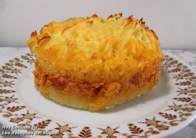 ¿Puede haber algo más rico y agradable al paladar que un puré de patata gratinado con queso parmesano? Pues la verdad es que para los disfrutones como nosotros, es difícil decir que una comida sea más rica que otra, pero hace tanto tiempo que no comemos un gratén de patata que al ver esta receta de Miquel, autor del blog Les Receptes del Miquel, que comparte con todos nosotros en vuestra sección ‘Hoy Cocinas Tú‘, se nos ha antojado. Y no es sólo puré de patata gratinado, es mucho más, como habéis leído en el titular, ilustrando estas líneas podéis ver un Pastel de patata relleno de salmón.