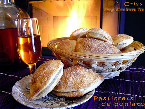 Kriss, la autora del blog Alimenta, nos envía una receta de un dulce tradicional que según nos cuenta, siempre se elabora por estas fechas en Alicante, son los Pastissets de boniato, como veréis, similares a los flaons de Morella que os mostramos hace unos días. En la zona de Castellón y Tarragona estos pastissets se encuentran todo el año con distintos rellenos, pero como comenta Kriss, es un dulce que se ha heredado de generación en generación y en los hogares se elaboran para fechas especiales como la Navidad.