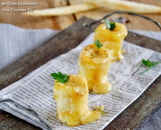 Dado que es un aperitivo muy calórico porque el queso contiene muchas grasas y las patatas también las adquieren en el confitado, conviene tomarlo con moderación, de todas formas estas patatas son un pequeño aperitivo, cada patata rellena de queso es un suculento pero pequeño bocado. Tomad nota de la receta que se suma a vuestra sección Hoy Cocinas Tú.