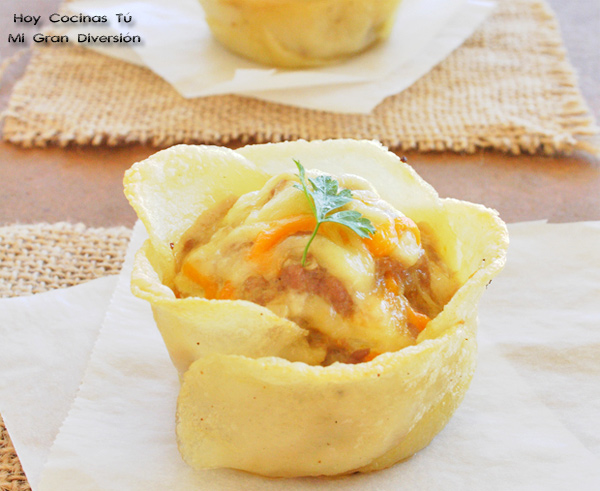 Tienen forma de flor, una bonita presentación para un plato tradicional como podemos considerar unas Patatas rellenas de carne, pero que Dolores, autora del blog Mi Gran Diversión, ha personalizado a su gusto añadiéndole los aromas y sabores de la mezcla de especias de curry.