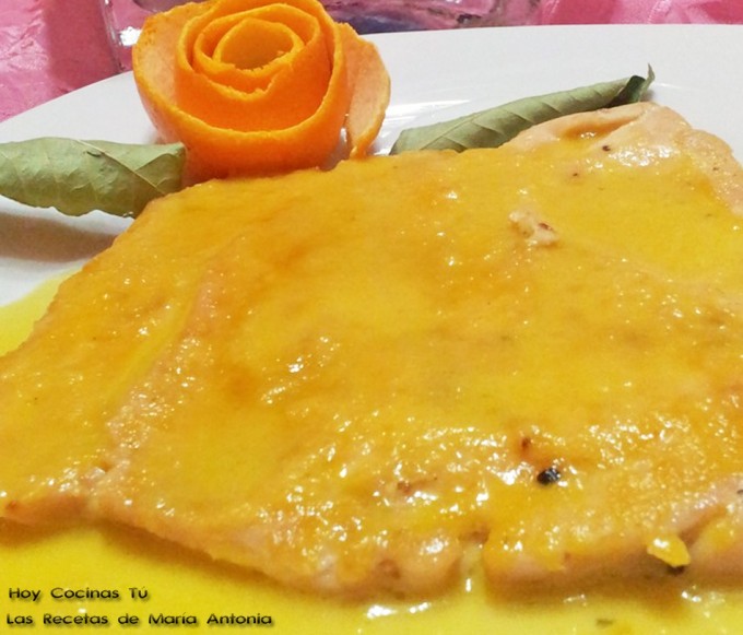 Servir los filetes de pollo con la salsa de naranja recién salido del horno. ¡¡ Buen provecho !!
