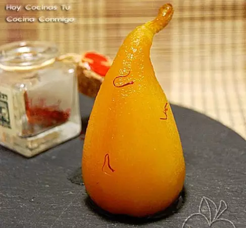 Estas atractivas (y más ricas aún) Peras en almíbar de azafrán y vino dulce, son de Palmira, del blog Cocina Conmigo, un exquisito postre que se suma a la sección de recetas Hoy Cocinas Tú, fácil de hacer y con el que podemos sorprender a nuestros comensales en cualquier celebración.