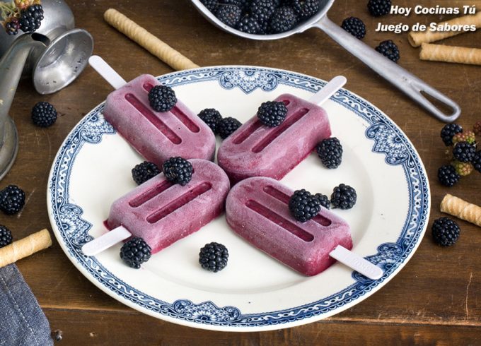 Quien ha tenido posibilidad de recolectar moras silvestres aunque sea hace muchos años, en su infancia, puede no reconocer la misma fruta en las moras que venden en los supermercados, son moras cultivadas y son enormes, pero no tienen ni el mismo aroma, ni sabor, ni textura… Y quienes continúen teniendo la posibilidad de recolectar estas golosas bayas ahora que están de temporada, seguro que tomarán nota de la receta que Ana y Blanca, autoras del blog Juego de Sabores, comparten en vuestra sección Hoy Cocinas Tú, son unos sencillos pero delicioso Polos de moras silvestres.