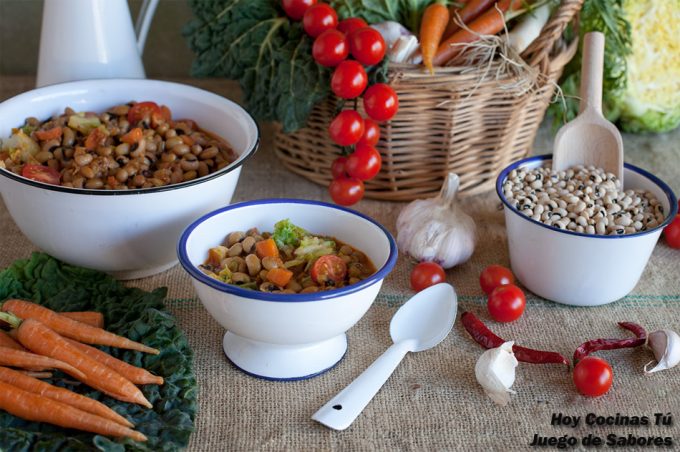 Las legumbres no sólo son ricas por su valor nutricional y por los beneficios que aportan a la salud, también hay una gran riqueza en cuanto a variedad, incluso hablando de una legumbre en particular. Seguro que conocéis distintos tipos de judías o alubias, y es muy probable que conozcáis las que Ana y Blanca utilizan en la nueva receta que comparten en la sección Hoy Cocinas Tú, son las judías de careta o carillas, de tamaño pequeño, color crema claro y con un punto negro en su zona central. Las autoras del blog Juego de Sabores nos invitan a prepara su Potaje de judías de careta o fréjoles (término que también define a las alubias).