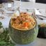 Rellena los calabacines con el pochado. Ponle los granos de granada por encima, o camúflalos un poquito dentro. Ralla por encima el queso viejo de oveja, sirve en platos bonitos, y disfrutad del momento.