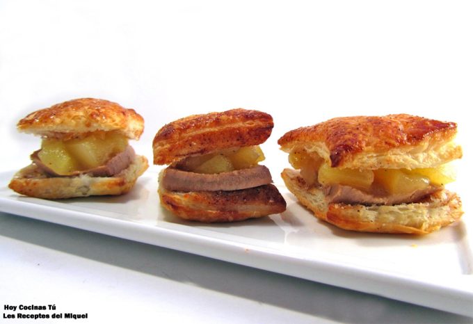 Estos mini sándwiches o bocaditos de hojaldre con foie y manzana están listos para servir, son un delicioso bocado os lo aseguro.