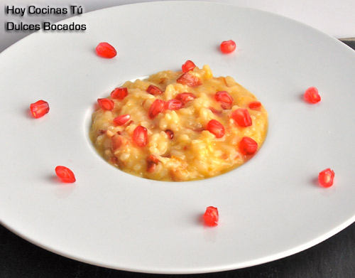 Carmen, la autora del blog Dulces Bocados, ha vuelto a tener otro despiste salado, y menuda alegría por muy golosos que seamos, pues nos propone que probemos su receta de Risotto de granadas con bacon que comparte con nosotros en vuestra sección de recetas Hoy Cocinas Tú. Estamos deseando regresar a casa (como os comentamos, hemos estado en CIOMijas y ahora nos encontramos en Granada para acudir a Gastrotur) para ponernos con este risotto, ahora hay unas granadas estupendas.