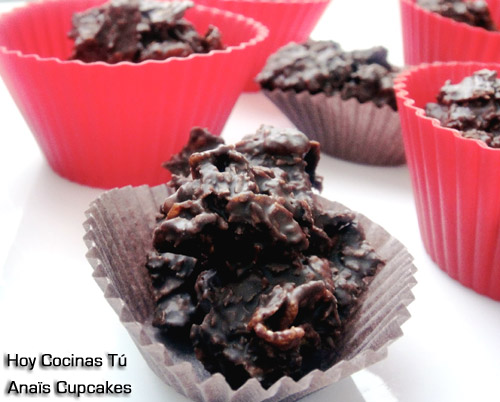 Hoy tenemos una nueva receta para vuestra sección Hoy Cocinas Tú, la comparte con nosotros la autora del blog Anaïs Cupcakes y se trata de un bocado dulce, de una elaboración muy sencilla, irresistible para los amantes del chocolate, son las Rocas de chocolate, coco, nueces y cereales. Seguramente todos habéis disfrutado en alguna ocasión de unas rocas de chocolate, y también las habréis elaborado. Son múltiples las opciones que esta sencilla elaboración nos ofrece, precisamente anoche cenamos en un restaurante que nos las preparó con almendra tostada como petit four.
