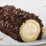 Preparamos el bizcocho batiendo los huevos junto con el azúcar hasta blanquear y que dupliquen el volumen. Añadimos la sal, la harina y el chocolate tamizados, mezclamos. Sobre una bandeja de horno con papel vegetal, vertemos la masa y horneamos durante 10-12 minutos a 180º C. Una vez horneado, enrollamos el bizcocho en el propio papel vegetal, cubrimos con un paño húmedo y dejamos enfriar.
