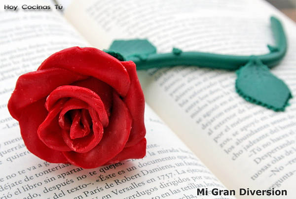 Hace unos años os mostramos cómo hacer chocolate plástico, ya sabéis que es una mezcla de chocolate y jarabe de glucosa que nos permite moldear el chocolate, es una receta muy fácil. Se puede hacer con chocolate negro, con chocolate con leche o con chocolate blanco, con éste último es con el que Dolores, autora del blog Mi Gran Diversión, ha hecho la Rosa de chocolate para Sant Jordi que ilustra este post.