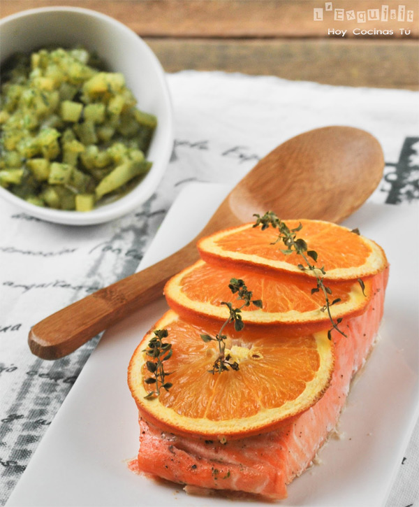 Nos encanta la combinación del salmón con la naranja, elaboramos muchas recetas en las que estos dos ingredientes se unen, muchas más de las que podéis ver en el blog, sólo os dejamos un ejemplo, el Salmón al horno con costra de naranja y parmesano. Para nuestra fortuna, y la vuestra, tenemos una nueva receta de Salmón a la naranja que probar, es la que comparte en vuestra sección Hoy Cocinas Tú la autora del blog L’Exquisit, Sonia.