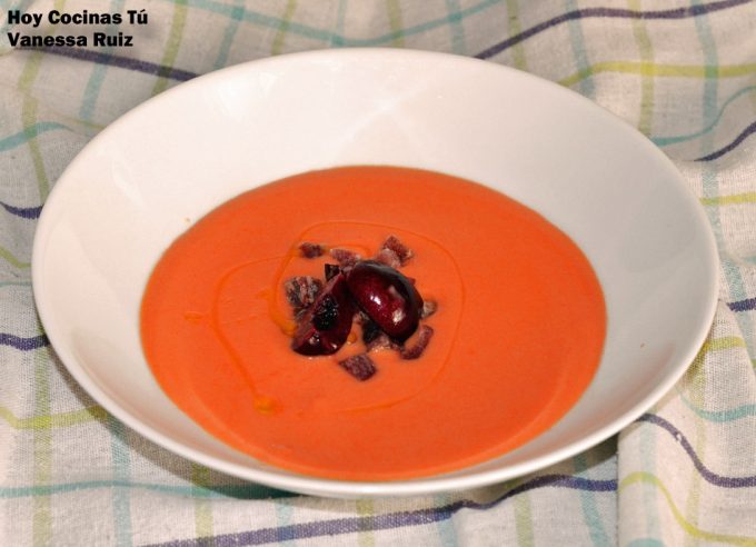 Si sois de los que no dejáis escapar ninguna versión de las sopas frías típicas del verano, seguro que habéis probado el gazpacho de cerezas, pues es muy popular, como el de sandía, y a cuál más rico, ¿verdad? Pues hoy tenemos en vuestra sección de recetas ‘Hoy Cocinas Tú‘ la versión del salmorejo con cerezas, la comparte con nosotros Vanessa Ruiz, quien nos explica que ha tenido que dejar un poco de lado la cocina dulce, y que aprovecha estas preparaciones culinarias para que los más jóvenes de su casa coman fruta.