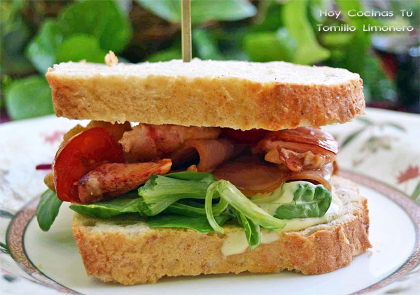 Hoy tenemos un bocadillo de lujo en vuestra sección de recetas Hoy Cocinas Tú, nos la envía Alejandro, autor del blog Tomillo limonero, y es un Sándwich de bogavante con bacon, tomates asados y salsa tártara. Sin duda, es una apetitosa propuesta para ofrecer en un brunch o para una cena exquisita.