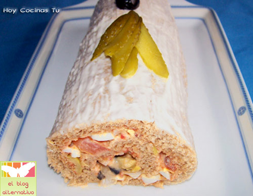 Este Sandwich vegetariano en forma de brazo o rollito es la propuesta que nos llega para vuestra sección de recetas Hoy Cocinas Tú desde El Blog Alternativo, una elaboración fácil de hacer y muy versátil, su autora nos propone variar el relleno al gusto, si deseamos añadir proteína animal quedará muy rico con atún, surimi, etc.