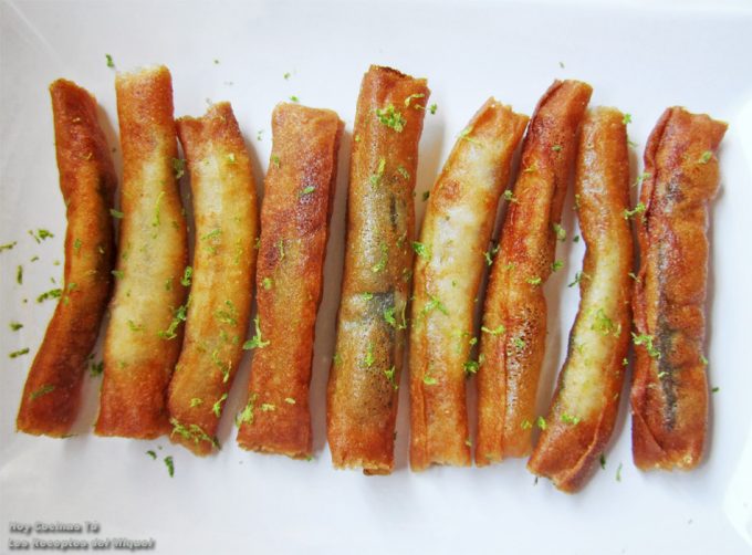 Podemos servir las sardinas marinadas crujientes en un cucurucho de papel o en un plato, rallando por encima un poco de piel de lima o de limón. Servimos enseguida.