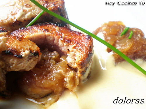 Una carne con sorpresa es la que nos propone elaborar Dolors del Blog de Cuina, sólo con el nombre del plato ya empezamos a salivar, y ¿qué os sugiere la foto?, seguro que os apetece probar este Solomillo relleno de cebolla caramelizada con salsa de mostaza, que Dolors comparte en vuestra sección de recetas Hoy Cocinas Tú.