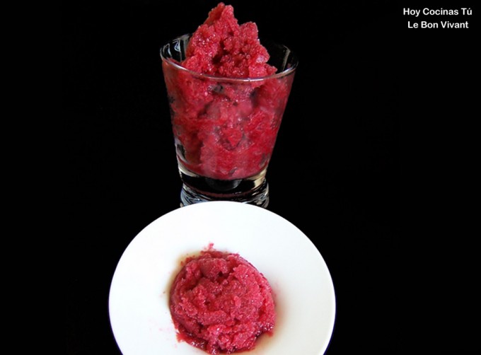 Introducir el preparado en el congelador y cada hora, sacar y rascar con una cuchara hasta que cristalice, más o menos 2 o 3 horas.