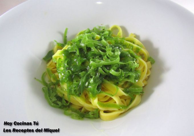 Hoy os traemos un plato de pasta con sólo tres ingredientes, y podrían ser dos si se omitiera el aceite de oliva virgen extra, resultando igualmente delicioso, aunque el toque que ofrece a cualquier plato un hilo de un buen aove en crudo, es difícil de superar. El caso es que Miquel, autor del blog Les Receptes del Miquel, nos propone probar sus Tagliatelle con queso gouda al pesto verde, por eso ha compartido la receta en vuestra sección ‘Hoy Cocinas Tú‘.
