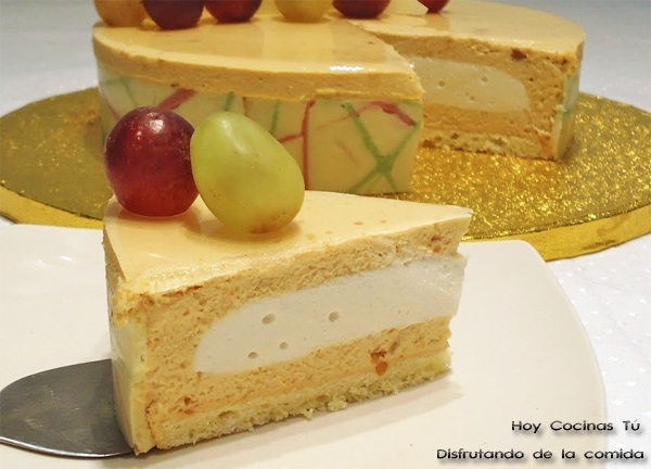 Nos cuenta Roberto, autor del blog Disfrutando de la comida, que en las pasadas fiestas se dio cuenta de lo que le gustaba la combinación de turrón de Jijona y moscatel, y lo vamos a probar, todavía nos queda turrón y habrá que ir pensando en hacer alguna receta o comerlo a bocados, en este caso, a nosotros nos gusta tomarlo con cava, champán o un crémant (y mezclar el turrón con las burbujas). El caso es que Roberto pronto pensó en convertir esta combinación en un postre más elaborado, esta Tarta de bavaroise de turrón y mousse de moscatel.