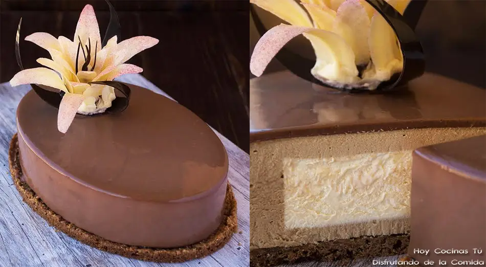 Roberto se supera a sí mismo en cada tarta que crea y elabora, hablamos del autor de esta obra artística y del blog Disfrutando de la Comida, ya le conocéis si vais siguiendo las recetas que comparte en vuestra sección Hoy Cocinas Tú y en su blog. Hoy nos sorprende con una Tarta de mousse de café y anís estrellado con chocolate blanco y amaretto, contemplad las fotos, porque además explica el paso a paso para hacer la flor con la que la decora. Como podéis imaginar, hacer la flor de chocolate da mucho trabajo, pero la pasión por la pastelería de Roberto da para ello y para mucho más. Si la compartís, no dudéis en intentar hacerla.
