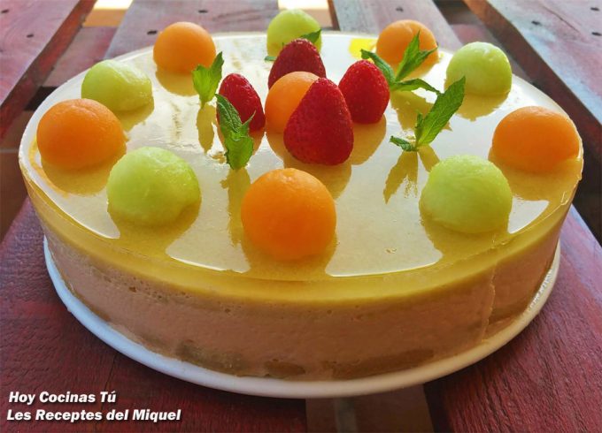 Vamos a hacer una de las mejores tartas frías de este verano siguiendo la receta que comparte Miquel, autor del blog Les Receptes del Miquel, en vuestra sección ‘Hoy Cocinas Tú‘. Ilustrando estas líneas podéis ver una Tarta de mousse de melón que seguro que también querréis probar, y lo tenéis fácil, porque tenéis la explicación de la receta paso a paso a continuación, y aunque es algo entretenida, no es una tarta difícil de hacer, así que empezad tomando nota de los ingredientes.