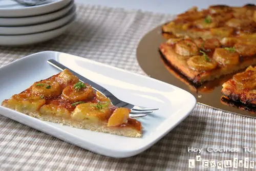 La fruta es una gran aliada para la salud, pero también lo es de las tartas, y si no, mirad esta receta de Tarta de plátano y lima que Sonia, autora del blog L’Exquisit, comparte con nosotros en vuestra sección de recetas Hoy Cocinas Tú. Debe ser una delicia cada bocado en el que se funde el sabor dulce del plátano con el aroma del ron y la lima, ¿no os parece?
