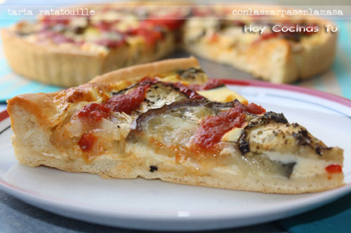 Vuestra sección de recetas Hoy Cocinas Tú nos aporta hoy una apetitosa tarta salada, la comparte con nosotros Paula, autora del blog Con las zarpas en la masa, y es la Tarta Ratatouille.