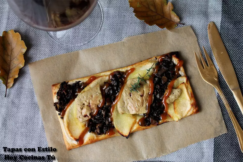 Tostas de foie y manzana hay muchas, así lo afirma Marcos, autor del blog Tapas con Estilo y de la creación culinaria que podéis ver sobre estas líneas, y comparte su receta en vuestra sección Hoy Cocinas Tú, una tapa a la que ha bautizado como Tarta-tosta de manzana, setas y foie con salsa de caramelo salado.