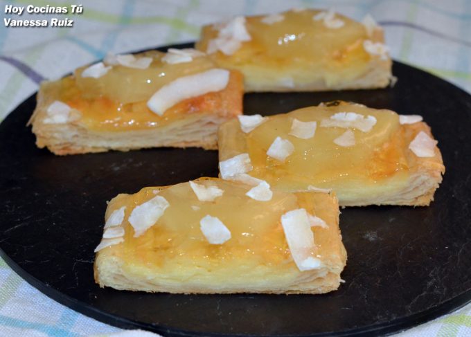 Así que si vais a encender el horno para hacer alguna comida (nosotros en breve tenemos que volver a preparar verduras asadas para nuestra escalivada y demás), aprovecha para preparar estas tartas de hojaldre y piña, seguramente sorprenderás a los más golosos y especialmente a quienes adoran la combinación de esta fruta tropical y el coco, porque no sólo está en lo que se ve, también en lo que no se ve, y es que la autora de esta receta ha hecho nuestra crema de coco para su postre, aquí tenéis la receta.