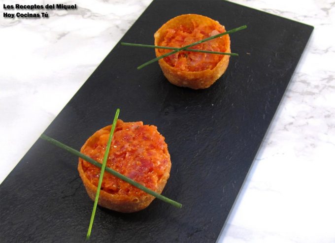 Hoy tenemos una receta de aperitivo muy sencilla, pero que merece la pena conocer y elaborar, pues seguro que con ella podréis deleitar a vuestros invitados en la próxima reunión en torno a la mesa, y también lo disfrutaréis vosotros, sobre todo si entre los embutidos que más os gustan se encuentra el fuet. Seguro que la mayoría conocéis este tipo de embutido tradicional de la gastronomía catalana. Y es que la receta que comparte Miguel en vuestra sección Hoy Cocinas Tú es de unas Tartaletas rellenas de fuet con tomate.