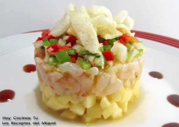Este Tartar de gambas y manzana va a ser la cena que prepararemos uno de estos días en casa, un entrante fresco y ligero, al que seguramente le añadiremos algún elemento picante, ya sabéis que nos gusta ese toque y que siempre es opcional. Estamos convencidos de que nos va a gustar esta propuesta de Miquel, autor del blog Les Receptes del Miquel, quien comparte su receta de tartar en vuestra sección Hoy Cocinas Tú. Si el tartar de gambas y sandía nos hace disfrutar, cuánto más este que se combina con manzana.