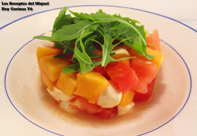 En verano apetecen platos frescos, fáciles y rápidos de hacer como este Tartar de melocotón y mozzarella de búfala que comparte Miquel en vuestra sección de recetas Hoy Cocinas Tú, y os recomendamos que lo probéis, porque nos consta que la combinación de estos tres ingredientes es una delicia, sea presentada como nos recomienda el autor del blog Les Receptes del Miquel, o sencillamente en un cuenco o plato como si fuera una ensalada.