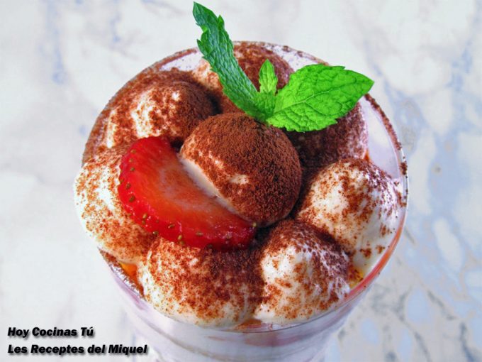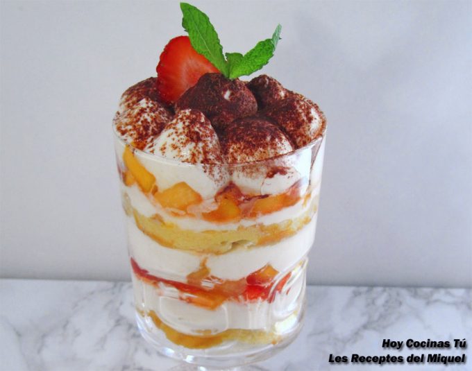 Seguro que todos conocéis el tiramisú y también algunas de las variantes que se realizan de este postre tradicional italiano, pues hoy os vamos a presentar otra propuesta que os va a encantar, sobre todo ahora que tenemos tanta variedad de frutas para combinar, y es que a receta que comparte en vuestra sección ‘Hoy Cocinas Tú‘ el autor del blog Les Receptes del Miquel, es un ‘Tiramisú’ de frutas, y lo pone entre comillas porque, evidentemente, no es un auténtico tiramisú, pero es un apetitoso y refrescante postre inspirado en él.