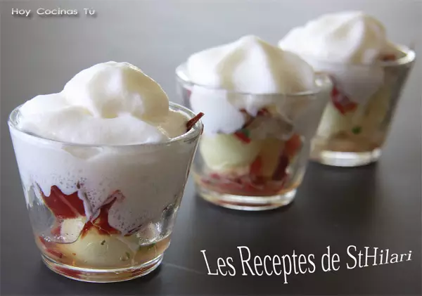 Últimamente, las recetas publicadas en vuestra sección Hoy Cocinas Tú han sido dulces y postres, así que para hoy hemos seleccionado un aperitivo basado en un clásico, el melón con jamón, una combinación de la que surgen mil y una ideas para crear y actualizar su servicio, como el Vasito de melón y jamón con espuma de queso de cabra que comparte con nosotros Alfons, autor del blog Les Receptes de St. Hilari.