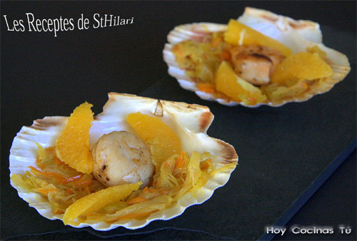 A ver qué os parece para la próxima comida festiva que tengáis que elaborar, esta receta de vieiras con naranja de Alfons, del blog Les Receptes de St. Hilari. A nuestros invitados, que ya las probaron en una ocasión, les encantaron, y a nosotros también, claro.