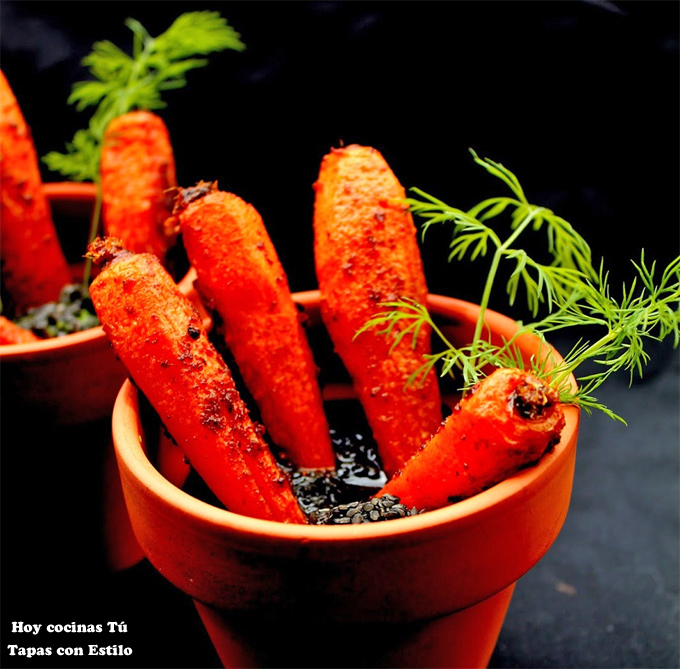 Hoy tenemos la propuesta de Marcos, autor del blog Tapas con Estilo, para servir un aperitivo o un entrante que además de ser nutritivo, es original y seguro que está deliciosa la combinación. Por un lado están las zanahorias asadas con especias, irresistibles, y por otro un hummus de guisantes.