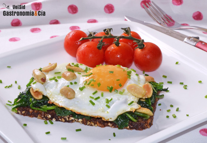 A este huevo, sea frito o a la plancha (incluso un huevo duro cortado en rodajas es otra buena opción), le acompañan unas espinacas rehogadas con cacahuetes, que se posan sobre una tostada de pan de centeno integral. Lleva pocos condimentos, pero siempre podéis jugar con hierbas aromáticas y especias a vuestro gusto, además de aportar sabor y aroma, están enriqueciendo vuestro catálogo de sabores y ayudando a reducir el consumo de sal. En fin, ya lo sabéis, si queréis un desayuno rico y sano y os gusta más tirar por el salado, tomad nota de esta receta de huevo frito con espinacas y cacahuetes, y contadnos si hacéis algunas variantes.