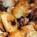 Mientras tanto, corta el pan del día anterior en trocitos pequeños para secarlos en la sartén hasta dejarlos crujientes. No queremos hacer unas migas impregnadas en grasa, queremos que el pan aporte sabor y una textura crujiente que acompañe la cremosidad del huevo mollet< y del puerro, que como comprobaréis, se convertirá en una golosina. Pon otra sartén antiadherente al fuego con un chorro de aceite de oliva virgen extra, caliéntala y manteniendo una temperatura media-baja, incorpora el pan y los ajos enteros. Ve moviendo de vez en cuando para que el pan se vaya secando y dorando. Cuando esté casi en su punto, incorpora la panceta ahumada troceada y deja se suelte parte de su grasa y esté hecha a tu gusto. Antes de retirar la sartén del fuego, espolvorea un poco de pimentón de la Vera y riega con un hilo de aceite de oliva virgen extra.