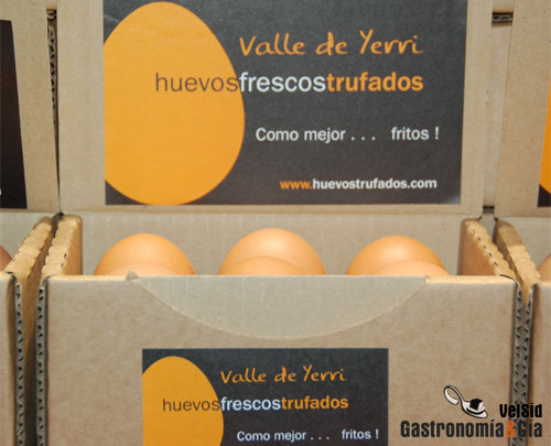 Los huevos frescos trufados Valle de Yerri son uno de los productos que pudimos conocer en el evento gastronómico Navarra Gourmet, Vive las Verduras. Se trata de huevos de gallina o de codorniz que se trufan mediante un proceso similar al que nosotros utilizamos a nivel doméstico. En un tarro hermético, introducimos unos cuantos huevos y una trufa negra durante 48 horas, la porosidad de la cáscara del huevo permite la entrada del intenso aroma de la trufa proporcionándole su característico sabor, pero sólo disfrutamos de este tipo de huevos durante la temporada de las trufas negras (Tuber melanosporum).