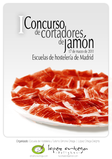 El concurso de cortadores de jamón para estudiantes se celebrará en la Escuela de Hostelería y Turismo Simone Ortega el próximo 17 de marzo de 2011 a las 10:00 horas. Los participantes deberán demostrar su destreza, estilo, rapidez, grosor y tamaño de la loncha, corte de ración de 80 gramos, limpieza de la zona de corte y presentación en plato.