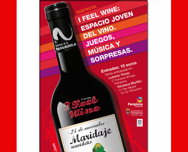 Será una vez más el último jueves del mes, el próximo 24 de noviembre de 2011, a partir de las 20 horas la sala multiusos del Edificio de Ascensores de Descalzos recibirá a los jóvenes que se apunten a I Feel Wine: Maridaje Navideño. Las entradas ya están disponibles en los establecimientos habituales (Luismix Vinos, c/ Iturrama, 68 y Vinoteca Murillo c/ San Miguel, 16) por un precio de 10 euros.