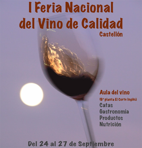Del 24 al 27 de septiembre, Castellón acoge la I Feria Nacional del Vino de Calidad, un evento organizado por FIVIN (Fundación para la investigación del vina y la nutrición), que junto a colaboradores como el Ayuntamiento de Castellón, la Cátedra de Gastronomía de la UJI, Cave Vinum, El Corte Inglés y Slow Food entre otros, han realizado un completo programa de actividades en torno al vino.