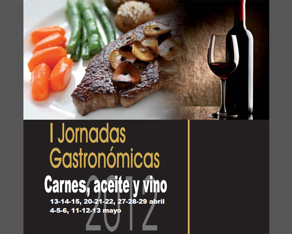 Hoy dan comienzo las I Jornadas Gastronómicas Carnes, Aceite y Vino de Castellón, un evento de larga duración pues se extenderá hasta el próximo 13 de mayo, pero como podéis ver en el cartel del evento, sólo se celebra los fines de semana, es decir, del 13 al 15 de abril, del 20 al 22 de abril, del 27 al 29 de abril, del 4 al 6 de mayo y del 11 al 13 de mayo de 2012.
