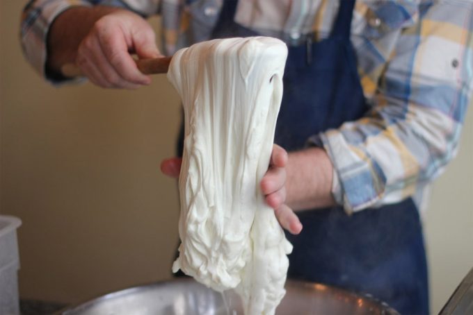 Los expertos explican que la leche de búfala pasteurizada se calienta y se le añade el cuajo y suero de leche natural, este primer proceso hace que la cuajada se acidifique rápidamente y alcance el pH correcto (la cuajada se madura durante cuatro horas), haciendo que sea lo suficientemente elástica para poder ser moldeada en agua caliente, y posteriormente las cuajadas son endurecidas con agua corriente y colocadas en salmuera. Los investigadores comentan que pequeñas variaciones del procedimiento marcan diferencias entre los quesos elaborados en diferentes queserías.
