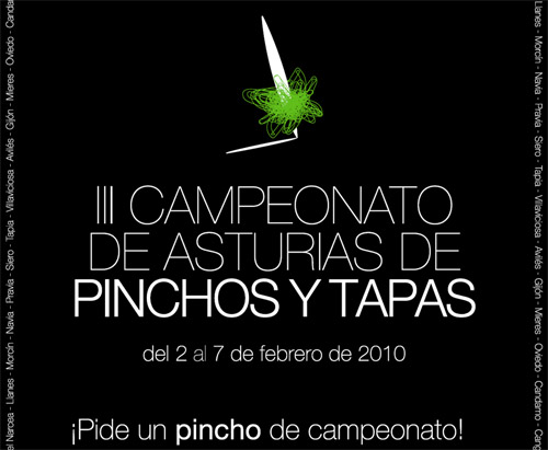 Una vez finalizado el plazo de inscripción para el III Campeonato de Asturias de Pinchos y Tapas, os anunciamos que la fecha de celebración de este certamen es del 2 al 7 de febrero bajo el título ‘Pide un pincho de campeonato’.