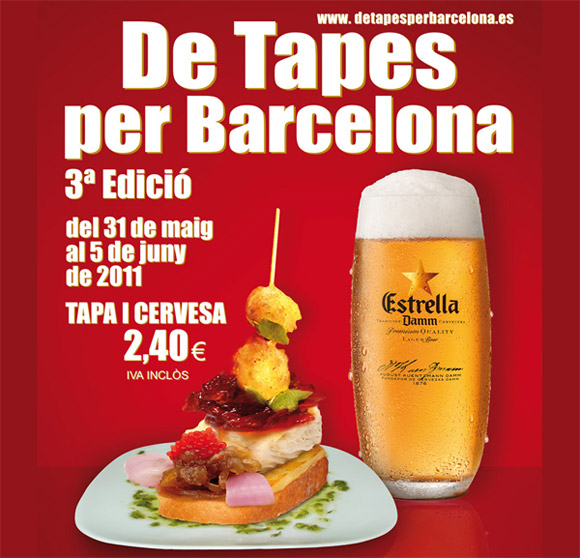 El pasado año por estas fechas se celebraba la primera edición de De Tapes per Barcelona, unas jornadas organizadas por el Gremio de Restauración de Barcelona que repitió en el mes de diciembre, por ello, la que va a dar comienzo en breve es la tercera edición de De Tapas por Barcelona, con un total de 41 establecimientos participantes que ofrecerán su tapa y cerveza por 2’40 euros.