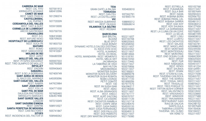 Son tantos los restaurantes que participan en las Jornadas del Atún Rojo de Balfegó 2019 de Barcelona y provincia (Cabrera de Mar, Canet de Mar, Castellbisbal, Cerdanyola del Vallés, Cornellá de Llobregat, Granollers, L’Hospitalet de Llobregat, Mataró, Molins de Rei, Mollet del Vallés, Ripollet, Sabadell, Sant Adrià de Besós, Sant Cugat del Vallés, Sant Joan Despí, Sant Pol de Mar, Sant Quirze del Vallés, Sant Sadurní d’Anoia, Santa Perpetua de Mogoda, Sitges, Teià, Terrassa, Vic y Vilanova i la Geltrú), que no se ha publicado un folleto con la propuesta gastronómica de cada uno de ellos, pero sí podemos facilitaros la lista de establecimientos participantes, y si queréis contactar con ellos para consultar cuál es su plato o menú con atún rojo, podéis anotar el número de teléfono que se adjunta.
